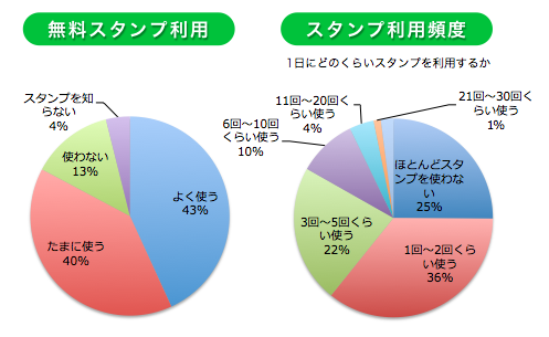 約2,000人のLINE利用者を対象に調査したユーザーアンケートによれば、無料スタンプ(スポンサードスタンプ)を利用するユーザーは「よく使う」「たまに使う」を含めると全体の8割を超える数値となっています。