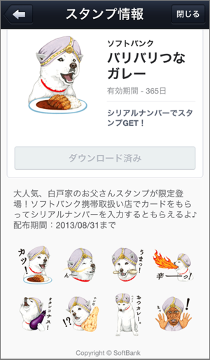 LINEマストバイであれば、言わずもがな「この商品を買えばLINEスタンプが貰えるよ!」ということになるわけですが、LINEスタンプの場合には“その先”があります。プレゼントを“貰って終わり”という従来のベタ付けに対し、LINEスタンプにはユーザがその後のコミュニケーションで利用するという利点があります。スタンプを通じてプレミアムキャンペーンの情報が広がっていくわけですね。